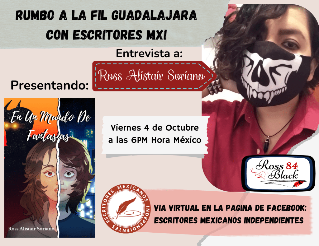He estado esperando mucho tiempo para por fin dar a conocer la noticia y creo que este es el momento perfecto. El próximo viernes tendré una entrevista con Escritores Mexicanos Independientes para darme a conocer a mí y a mi obra, ya que gracias a ellos tendré una participación en la Feria del Libro de Guadalajara 2024. ¡No se pierdan esta entrevista! Toda la información está en la imagen, pero de todos modos, cuando sea, les compartiré el enlace para que puedan verla.